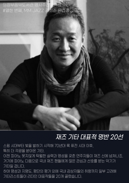 [금요저널] 의정부음악도서관은 12월 20일부터 2개월간 ‘재즈 기타 대표적 명반 20선’ 이라는 주제로 ‘엠엠재즈’ 편집장 김희준의 추천 컬렉션을 운영한다.