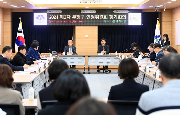 [금요저널] 부평구는 지난 19일 구청에서 ‘2024년도 제3차 구 인권위원회’를 열고 올해 부평구 인권 보장 및 증진 세부과제에 관한 추진실적을 심의했다.