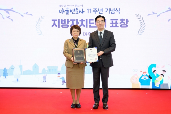 이번 표창은 여주시가 마을변호사 제도를 활성화하고 보다 많은 시민들이 이용할 수 있도록 노력해온 점 등을 인정받아 전국 지자체 중에서 유일하게 수상의 영예를 안았다.