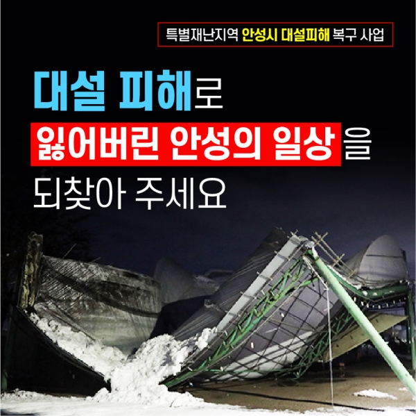 이에 안성시는 특별재난지역으로 선포, 피해 복구를 위해 각종 지원사업을 진행하고 있다.
