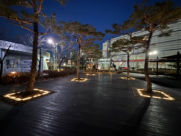 중앙동 행정복지센터는 평소 주민들의 왕래가 잦은 곳이나, 야간에는 별다른 경관 조명 시설이 없어서 다소 삭막했다.