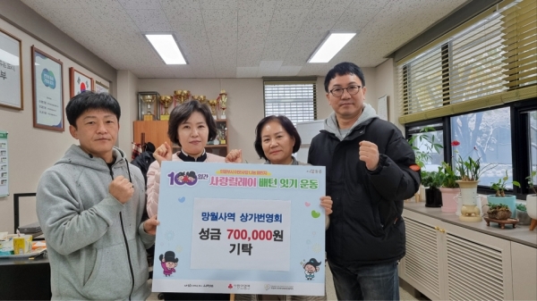 [금요저널] 의정부시 호원1동주민센터는 12월 20일 호원동 망월사역 상가번영회가 ‘100일간 사랑릴레이 배턴 잇기’의 일환으로 성금 70만원을 기탁했다고 밝혔다.