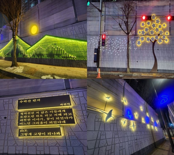 TF팀은 상반기 자체 회의를 거쳐 지난 6월부터 디자인 설계 용역에 착수했으며 옹벽 세척과 도색을 시작으로 지역적 특성을 반영한 먹골배, 수락산, 청학 등의 경관 조형물과 조명을 설치해 총 200m의 옹벽 정비를 마쳤다.