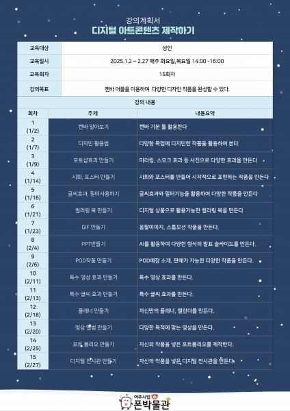 [금요저널] 여주시립 폰박물관은 겨울방학을 맞아 성인 대상 '디지털 아트 콘텐츠 제작하기' 특강을 운영한다.