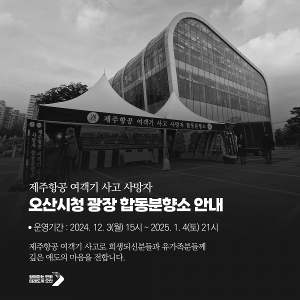 이와 함께 오산시는 오산시청 광장에 제주항공 여객기 참사 희생자를 위한 합동분향소를 설치했다.