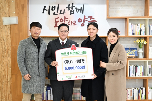 강수현 양주시장은 “㈜누리환경과 덕정환경㈜의 따뜻한 나눔에 진심으로 감사드린다”며 “기탁해주신 소중한 성금이 어려운 이웃들에게 큰 힘과 위로가 되도록 잘 전달하겠다”고 말했다.