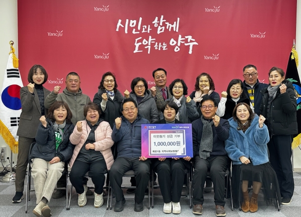 [금요저널] 양주시 회천1동 지역사회보장협의체가 관내 경제적 어려움에 있는 이웃에게 따뜻한 도움의 손길을 전하기 위해 이웃돕기 성금 100만원을 전달했다.