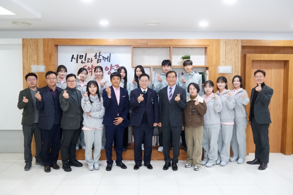 [금요저널] 강수현 양주시장이 지난 3일 시청 시장실에서 직장운동경기부 선수단에 임용장을 수여하고 양주시 체육 발전을 이끌어갈 2025년 을사년의 주역이 될 선수들을 격려했다.