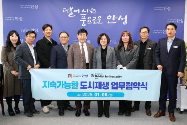 [금요저널] 안성시는 6일 한국해비타트와 성남·옥천지구 도시재생사업의 지속 가능한 민관협력형 주거환경개선을 위해 업무협약을 체결했다고 밝혔다.