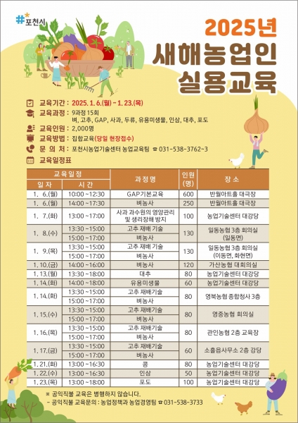 한편 포천시는 오는 23일까지 총 15일간 2025년 새해농업인 실용교육을 실시한다.