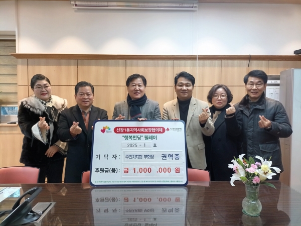 이에 정택진 신장1동장은 “2022년부터 4년째 매년 성금 기탁을 지원해 주시는 권혁중 위원님께 깊은 감사를 드리며 지원해 주신 후원금은 소외계층 발굴 및 지원을 위한 복지사업에 투명하게 잘 사용하겠다”고 말했다.
