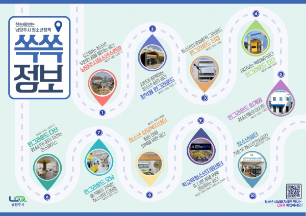 시는 각급 초·중·고등학교와 청소년 관련 시설에 ‘청소년 쏙쏙정보’를 배포할 예정이며 △시청 홈페이지 △내손에 남양주 △SNS 등 다양한 온라인 채널을 통해 누구나 스마트폰으로 쉽게 접근할 수 있다.