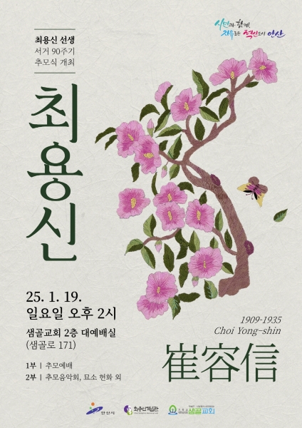 안산시와 샘골교회가 공동으로 주최하는 이번 추모행사는 샘골교회 박성민 담임목사의 추모예배로 시작해 △추모사 △안산시립국악단과 경기연회장로합창단의 추모음악회 △야외 최용신 묘소 헌화 등으로 진행될 예정이다.