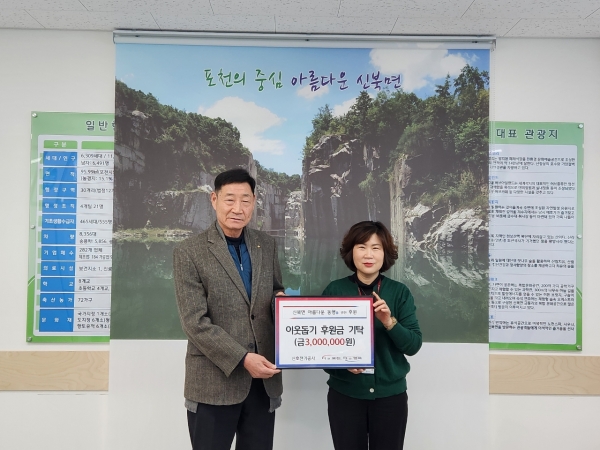 신미숙 신북면장은 “매년 어려운 이웃을 위한 따뜻한 나눔을 실천해 주신 신호전기공사에 감사하다”며 “기탁해 주신 성금은 관내 복지사각지대에 놓인 어려운 이웃들을 돕는 데 소중히 사용하겠다”고 말했다.