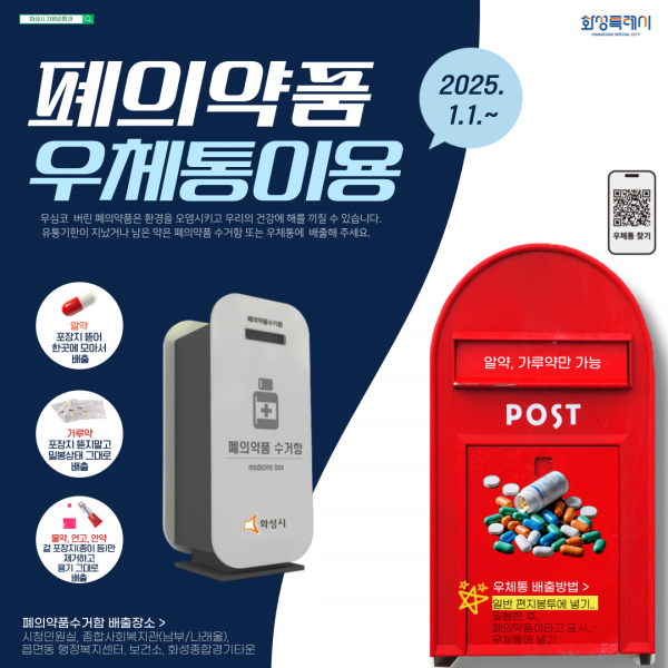 화성특례시, 우체통에 폐의약품 배출 가능해져. “시민편의 증대 기대”
