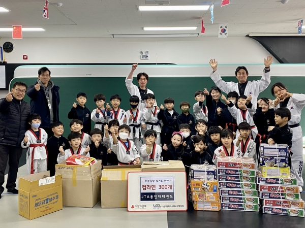 이번 컵라면 후원은 JTA용인대태권도 수련생들이 십시일반 정성을 모아 마련한 것으로 태권도를 통한 체력 향상뿐 아니라 올바른 인성교육을 강조하며 나눔의 가치를 실천하기 위해 추진됐다.