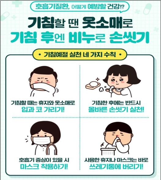 또한 ‘하루에 최소 3회 매회 10분 이상 창문 열어 환기, 먼지와 알레르기 유발 물질을 제거하기 위해 정기적으로 청소하기, 충분한 휴식과 영양관리 등을 실천해 호흡기감염병 없는 건강한 겨울나기’를 당부했다.