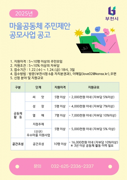 부천시, '2025년 마을공동체 주민제안 공모사업' 참여 공동체 모집