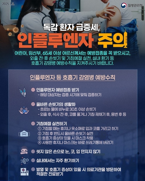 [금요저널] 남양주시는 최근 전국적으로 독감 의심 환자가 급증함에 따라 시민들에게 호흡기 질환 예방수칙을 준수하고 예방접종을 서둘러 달라고 당부했다.