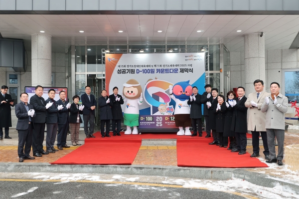 가평군은 14일 군청 현관에서 ‘제15회 경기도장애인체육대회’ 및 ‘제71회 경기도체육대회’ 개최 전 100일을 기념하는 디데이 카운트다운 보드판 제막식을 개최했다.