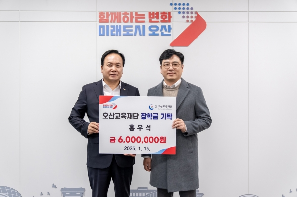 [금요저널] 오산시는 지난 15일 홍우석 대표가 오산시 지역 인재육성을 위한 장학금 6백만원을 기탁했다고 밝혔다.