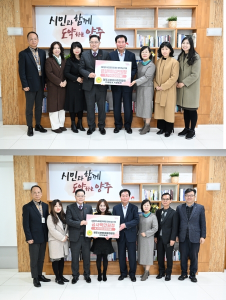 [금요저널] 재단법인 양주시희망장학재단이 최근 양주시어린이집연합회 가정·직장·민간분과 원장들이 시청을 방문해 장학기금 570만원을 기탁했다고 16일 밝혔다.