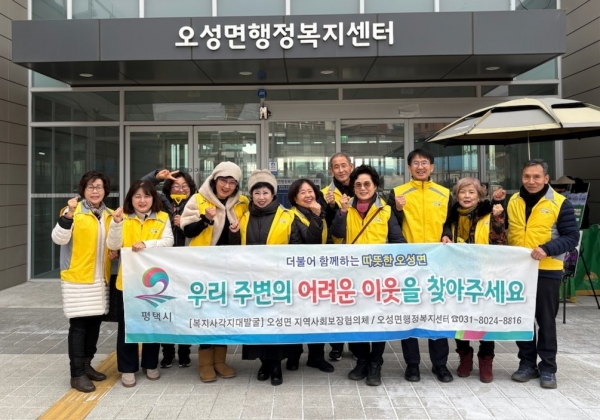 강성식 오성면장은 “동절기에 주변의 어려운 이웃을 찾고 살피는 지역사회보장협의체에 감사드리며 도움이 필요하지만 지원받지 못하고 있는 복지 소외계층을 적극 발굴해 맞춤형 복지서비스를 제공하겠다”고 말했다.