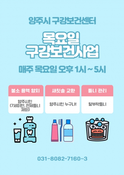 시 관계자는 “올바른 구강 위생관리 습관을 형성해 누구나 자연치아를 오랫동안 건강하게 사용하시기를 바란다”며 “앞으로도 양주시민의 구강 건강증진을 위해 최선을 다하겠다”고 밝혔다.
