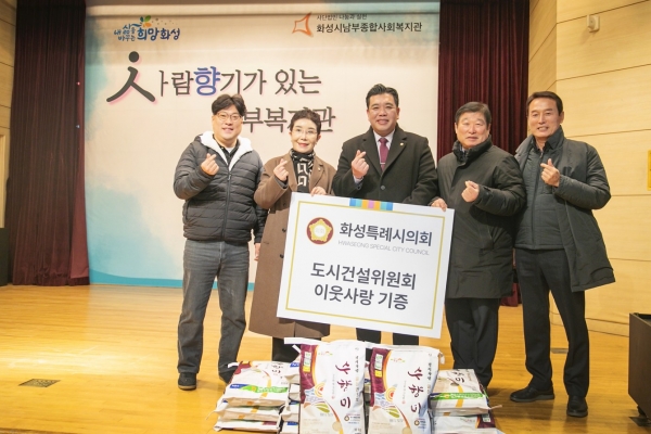 [금요저널] 화성특례시의회 도시건설위원회는 을사년 새해 설 명절을 앞둔 17일 관내 장애인복지시설 및 노인복지시설 두 곳을 찾아 화성지역특화품종“수향미”로 이웃사랑의 마음을 전달했다.