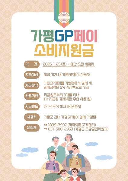 [금요저널] 가평군은 설 명절을 맞아 오는 1월 25일부터 지역화폐인 가평GP페이 소비지원금을 지급한다고 밝혔다.