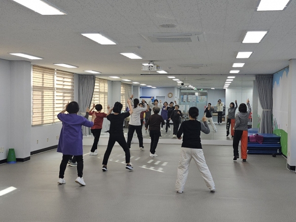 이번 프로그램은 가평군체육회의 정다운 지도자가 강의를 맡아 에어로빅 동작 학습, 근력 강화, 치매 예방, 우울증 완화를 목표로 구성됐다.