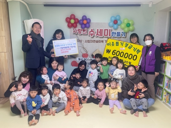 시립자연숲따복어린이집 이경선 원장은 “2019년부터 시작된 작은 나눔의 마음이 매년 이어져 올 수 있도록 애써주신 학부모님과 교사분들께 진심으로 감사드리며 지난 7년을 넘어 앞으로도 7년 이상 초평동행정복지센터에 후원해 어려운 이웃을 도울 수 있도록 노력하겠다”고 전했다.