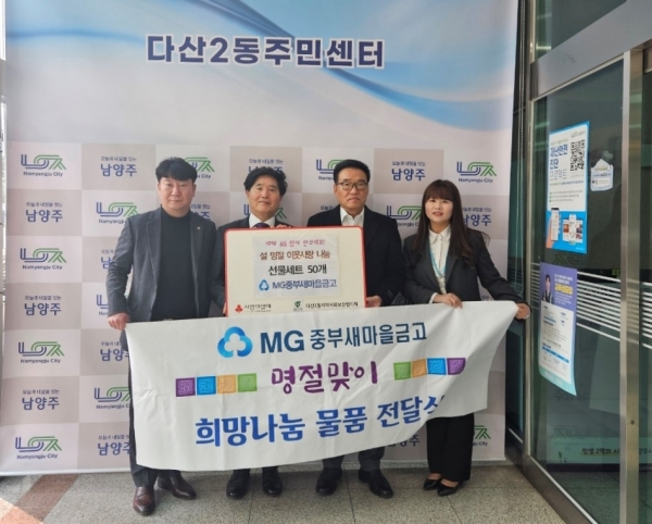 김민수 다산2동 지역사회보장협의체 위원장은 “매년 명절마다 어려운 이웃을 위해 따뜻한 나눔을 실천하는 MG중부새마을금고에 깊이 감사드린다”며 “기탁해주신 소중한 후원이 꼭 필요한 분들에게 잘 전달될 수 있도록 하겠다”고 전했다.