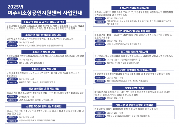 2025년 여주시소상공인지원센터 주요 사업은 다음과 같다.