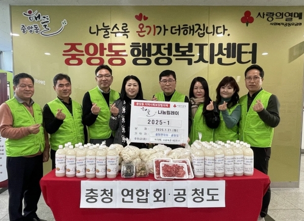 백경희 중앙동장은 “소외된 이웃을 위한 해뜰나눔릴레이 1호가 되어주신 충청연합회에 진심으로 감사드린다 전달해 주신 따뜻한 나눔은 도움이 필요한 분들에게 소중히 전달하겠다 앞으로도 민관이 협력해 따뜻하고 행복한 중앙동을 만들어 가겠다”고 말했다.