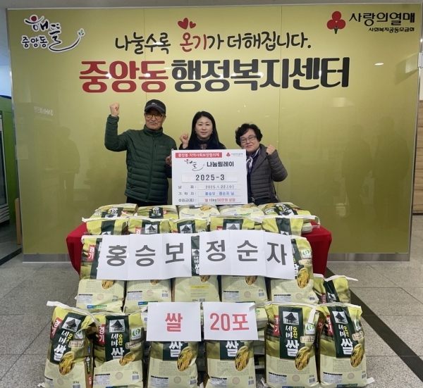 한편 중앙동 해뜰나눔릴레이는 2019년 시작된 중앙동 특화사업으로 기부자들이 자유롭게 참여해 지역사회 소외계층을 돕는 활동으로 매년 많은 단체와 개인이 동참해 나눔의 선순환을 이어가고 있다.