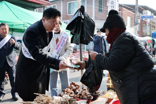 서 군수는 또 현장에서 ‘설 명절 물가안정 캠페인’을 진행하고 시장을 찾은 군민들과 물가상승으로 인한 어려움을 함께 나누며 소통하는 시간을 가졌다.