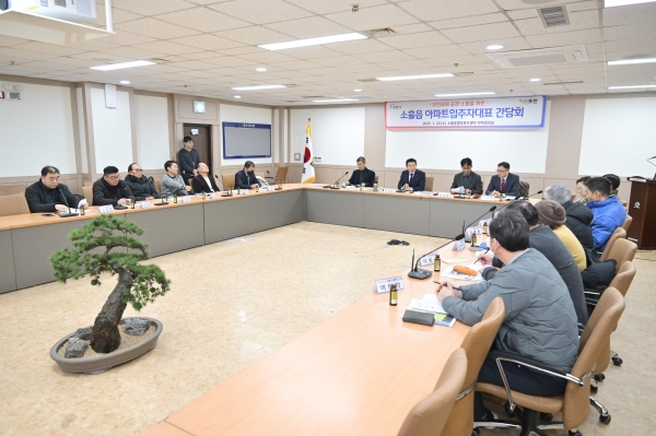 [금요저널] 백영현 포천시장은 2025년 을사년 새해를 맞아 지난 22일 소흘읍행정복지센터에서 2025년 소흘읍 아파트입주자대표 간담회를 개최했다.
