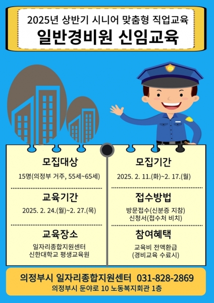 의정부시, 2025년 상반기 일반경비원 신임교육 참여자 모집