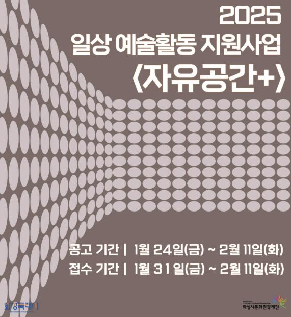 [금요저널] 화성시문화관광재단은 오는 1월 31일부터 2월 11일까지 '일상 예술활동 지원사업 '자유공간+'' 공모를 진행한다.
