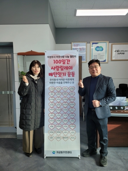 [금요저널] 의정부시 자금동주민센터는 이웃 간 따뜻한 사랑을 전하고 나눔 문화에 적극 참여해 어려운 이웃을 위한 후원을 이어나가는 ‘100일간 사랑릴레이 배턴 잇기’를 성황리에 종료했다.
