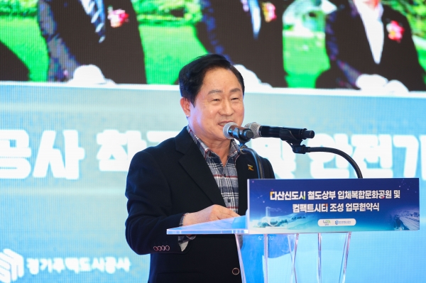 [금요저널] 남양주시는 5일 김세용 GH 사장 등 주요 관계자들이 참석한 가운데 경기주택도시공사와 함께 다산신도시 내 경의중앙선 철도 복개 상부 공간에 입체복합문화공원 조성을 위한 업무 협약을 체결하며 본격적인 사업의 출발을 알렸다.