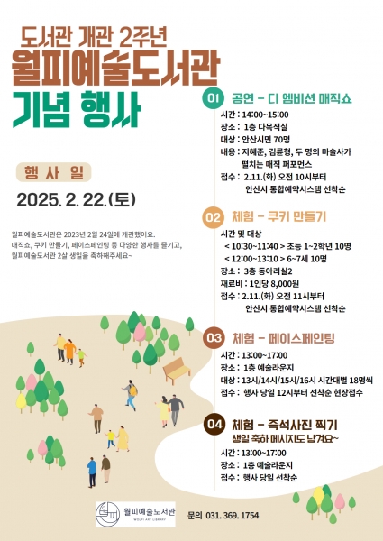 행사에 대한 자세한 사항은 월피예술도서관 또는 안산시 도서관 누리집으로 문의하면 안내받을 수 있다.