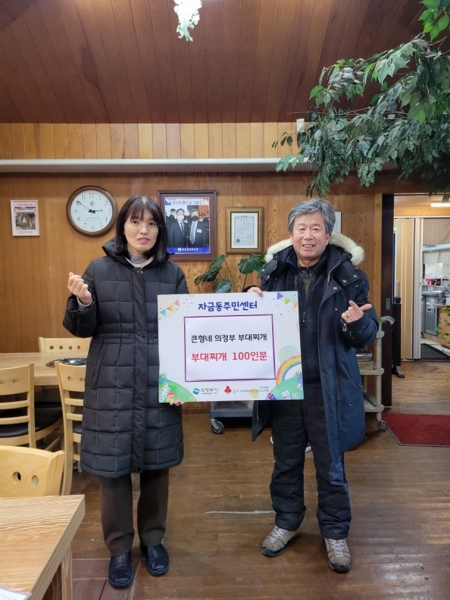 권종원 동장은 “매서운 한파에도 따뜻한 먹거리로 뜨거운 이웃사랑의 열기를 전하는 큰형네 의정부 부대찌개에 깊이 감사드린다”며 “어려운 시기에 따뜻한 지역사회를 만들기 위해 앞장서는 자금동이 되도록 노력하겠다”고 말했다.