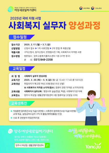 양주시, ‘2025년 양주여성새로일하기센터사회복지 실무자 양성 과정’ 교육생 모집