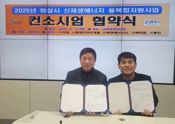 시는 11일 화성종합경기타운에서 2025년 신재생에너지 융복합지원사업 추진을 위한 ‘신재생에너지 융복합지원사업 컨소시엄 협약식’을 열고 컨소시엄 참여기관별 역할과 구성, 사업 세부내역의 확정, 사후관리 등에 협약했다.