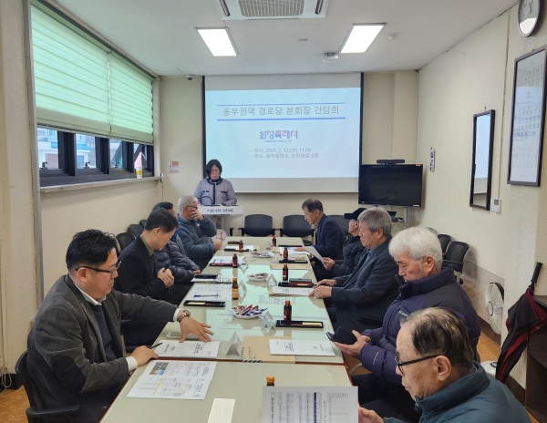 이번 간담회는 2025년 1월 1일부로 노인복지시설 단위사무 일부가 동부출장소로 위임됨에 따라 경로당 관리 및 운영 지원 업무를 동부출장소 복지위생과에서 전담하게 됐다을 안내하기 위해 마련됐으며 박민철 동부출장소장을 비롯해 분회장 등 10여명이 참석했다.
