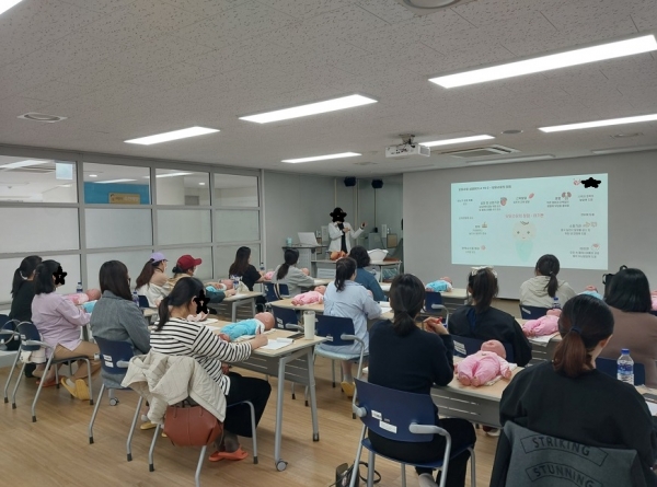 이번 교육은 모유수유의 장점 및 산모와 태아에게 필요한 음식조절, 수유간격 맞추기, 우는 아이 달래기 등 모유수유에 필요한 주제로 구성하고 국제모유수유전문가의 유방마사지, 개인별 수유자세 교정 등을 실습으로 구성했다.