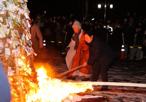 [금요저널] 주광덕 남양주시장은 지난 12일 대한불교조계종 봉선사에서 주최한 ‘2025년 을사년 정월대보름 달집태우기 행사’에 참여해 시민들과 함께 건강과 풍요를 기원했다.
