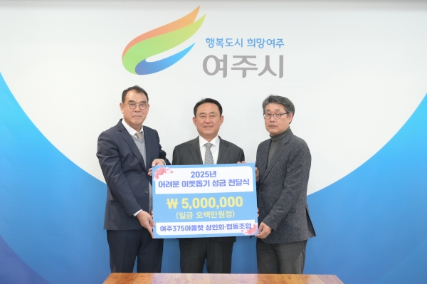 이충우 여주시장은 “경기 침체와 소비위축으로 누구보다 힘든 시기에 지역사회를 위해 나눔을 베풀어주시는 여주375아울렛 상인회에 진심으로 감사드린다”며 “상인회분들이 마음을 모아 보내주신 성금이 소중하게 쓰일 수 있도록 전달하겠다”고 말했다.